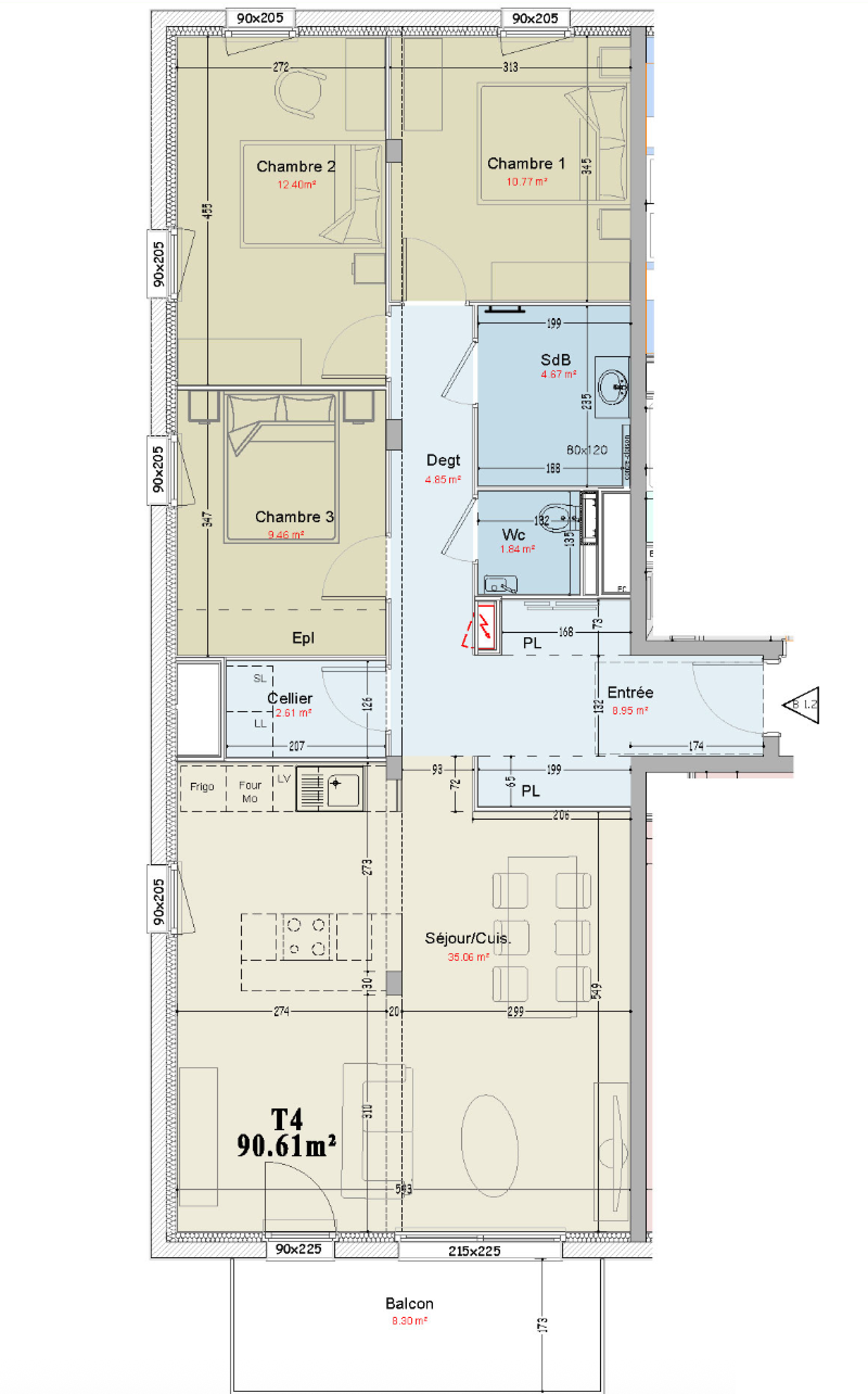 4 pièces - 79,80 m²