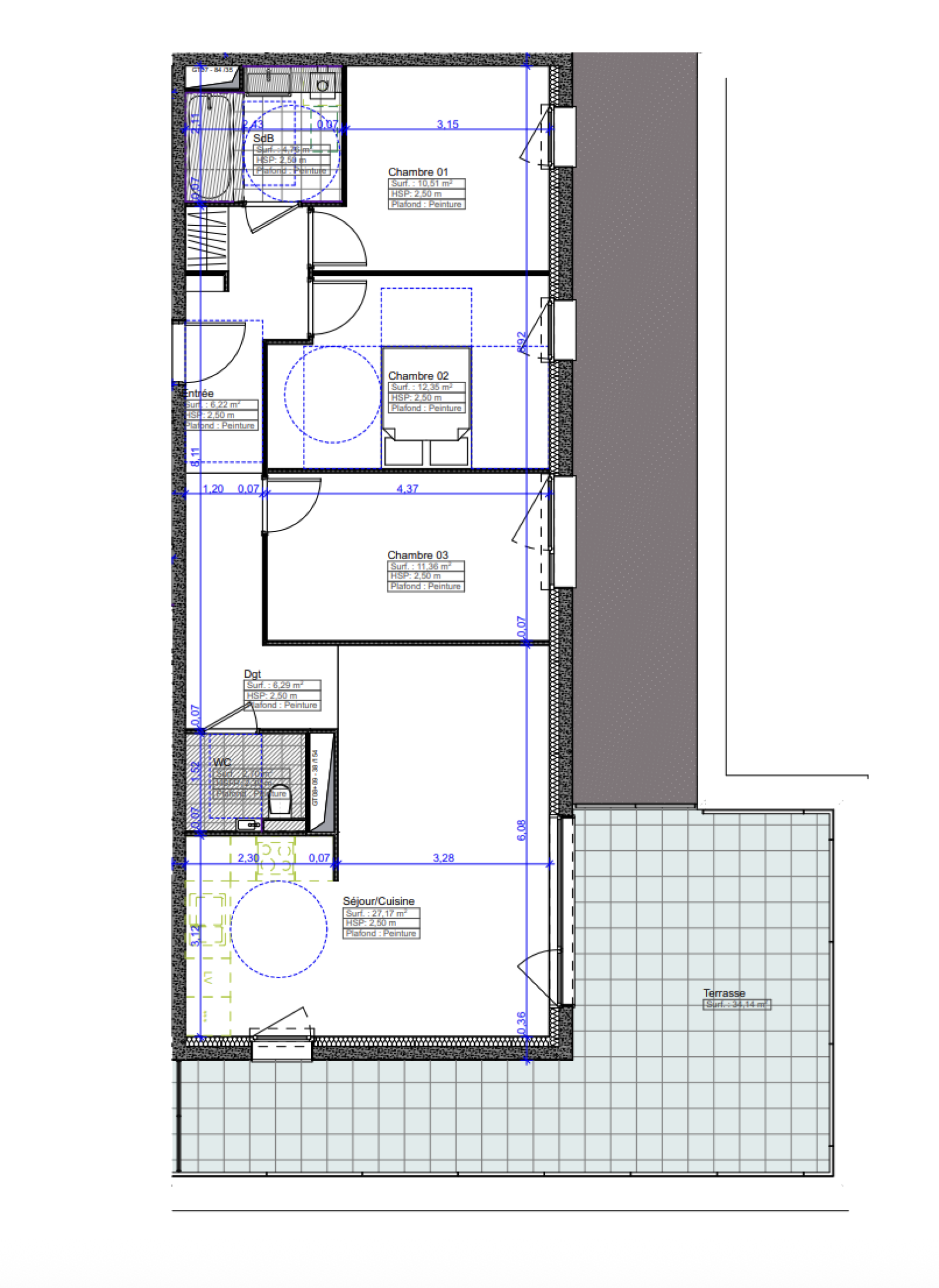 Situé au dernier étage avec ascenseur, il se compose d’une entrée avec placard, d’un WC suspendu séparé, ainsi que d’une salle de douche privative entièrement équipée.