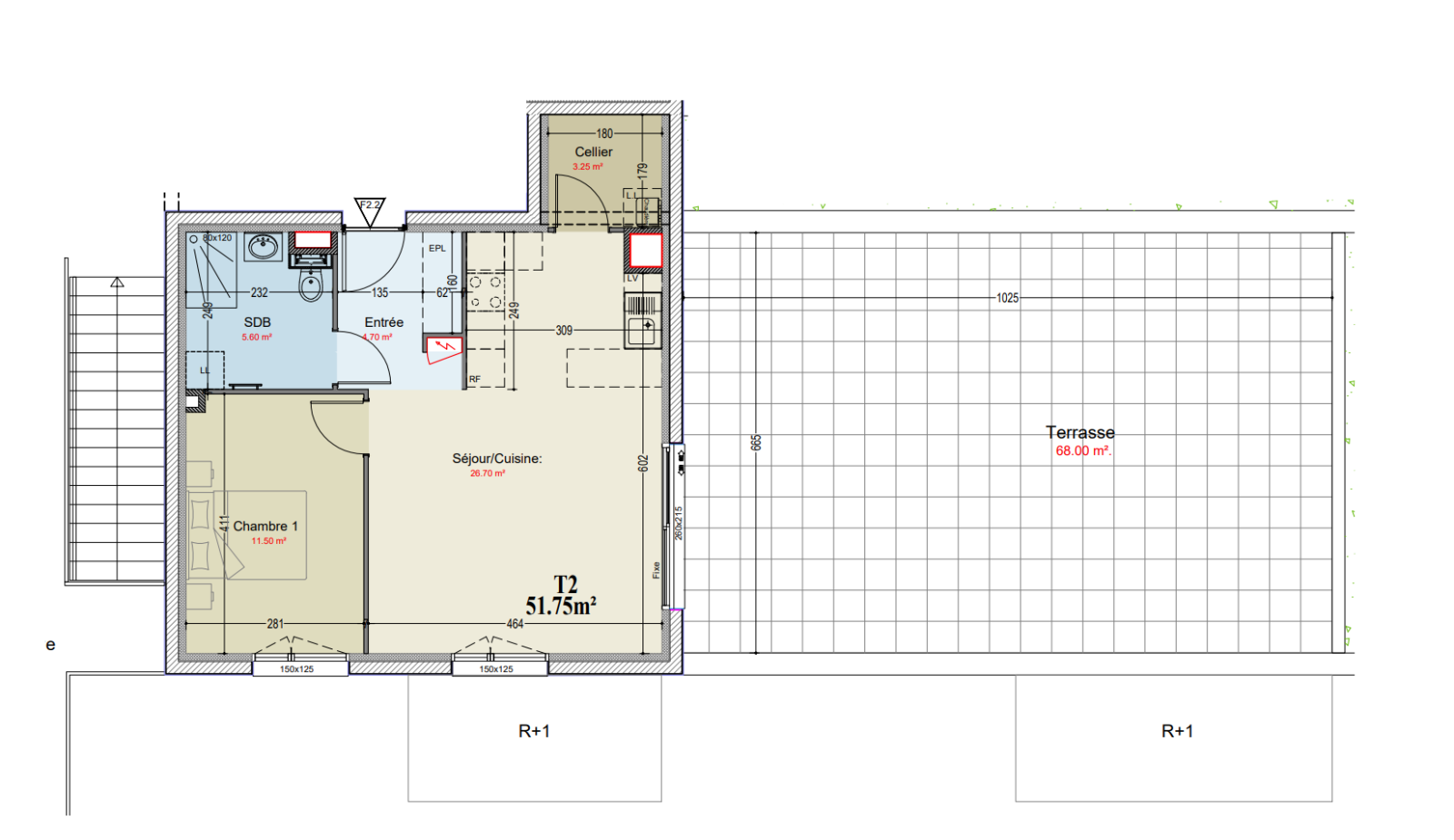 Composé d'une entrée avec emplacement placard, une salle d'eau, une belle pièce-à-vivre avec cuisine ouverte de 27 m2 une arrière cuisine,