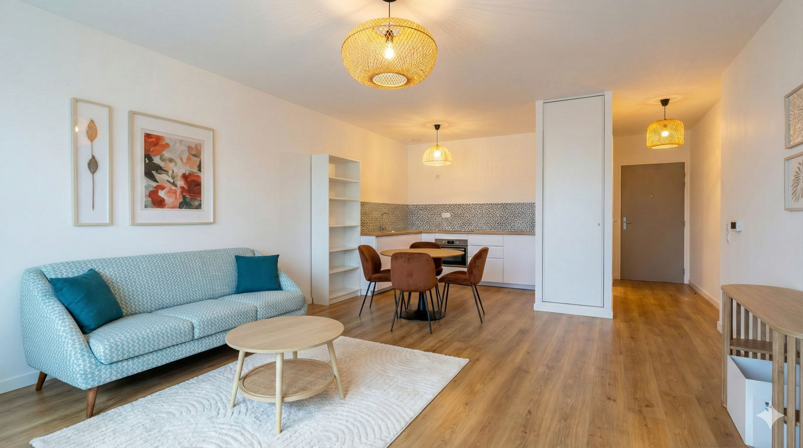 L’appartement se compose d’une pièce de vie lumineuse avec cuisine ouverte, donnant accès à une agréable terrasse prolongée par un jardin privatif, parfait pour profiter d’un espace extérieur verdoyant.